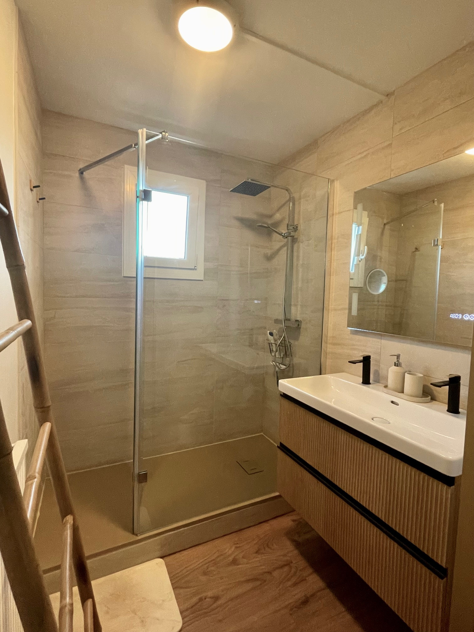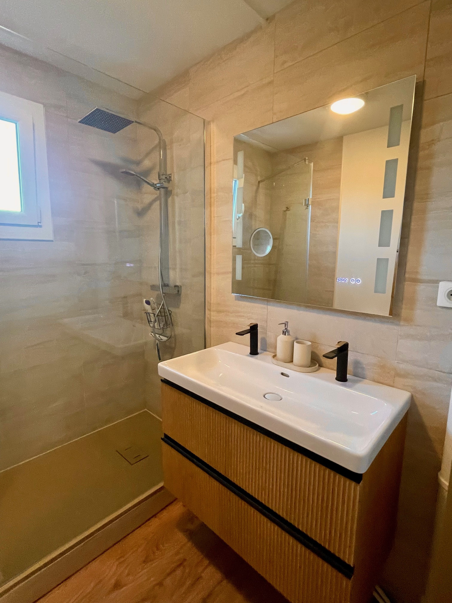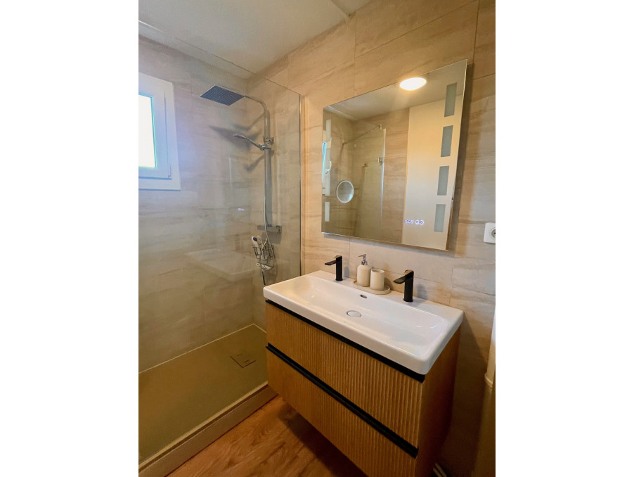 Le coin nuit séparé comprend deux belles chambres avec dressing séparées par une salle d'eau moderne. Toilettes séparées.