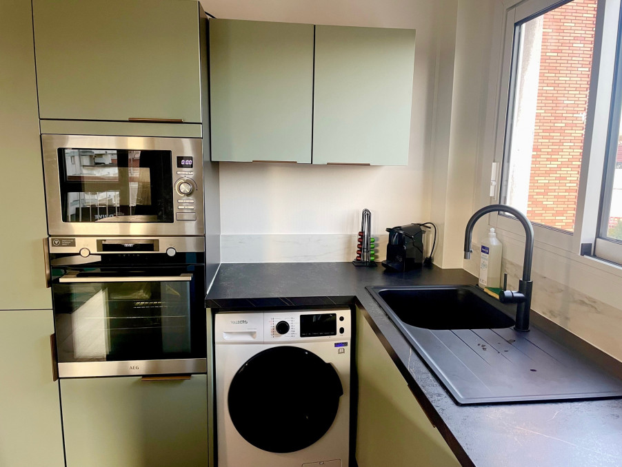 Avec une surface de plus de 60 m², cet appartement a été entièrement refait à neuf. Vous serez séduit par son séjour lumineux en parquet, agrémenté d'une cuisine américaine ouverte, toute équipée avec des appareils neufs. La décoration allie élégance et modernité, créant une atmosphère accueillante.