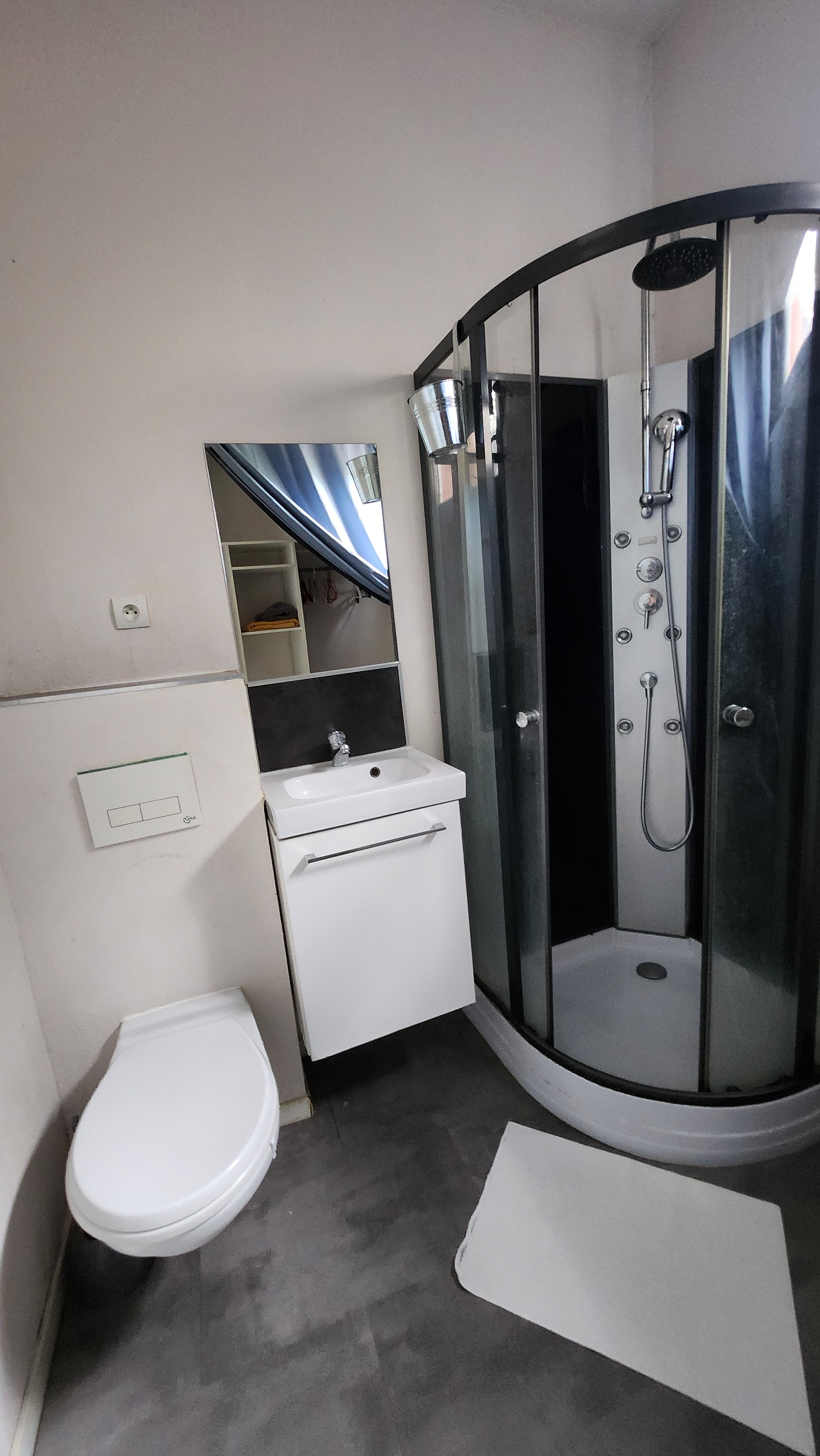 -salle d'eau avec douche , wc suspendu -serviettes de toilettes, draps et torchon disponibles
